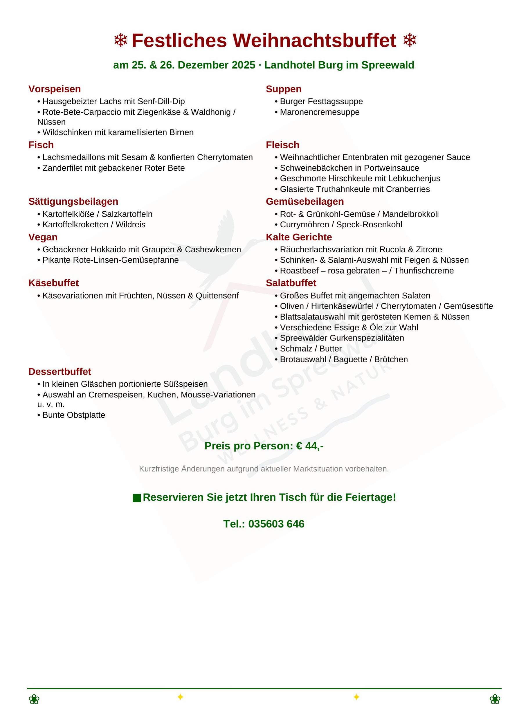 Festliches Weihnachtsbuffet